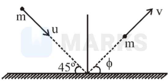 A particle of mass moving with a speed strikes a smooth horizontal surface at an angle . The particle rebounds at an angle with speed , if coefficient of restitution is , then the angle is