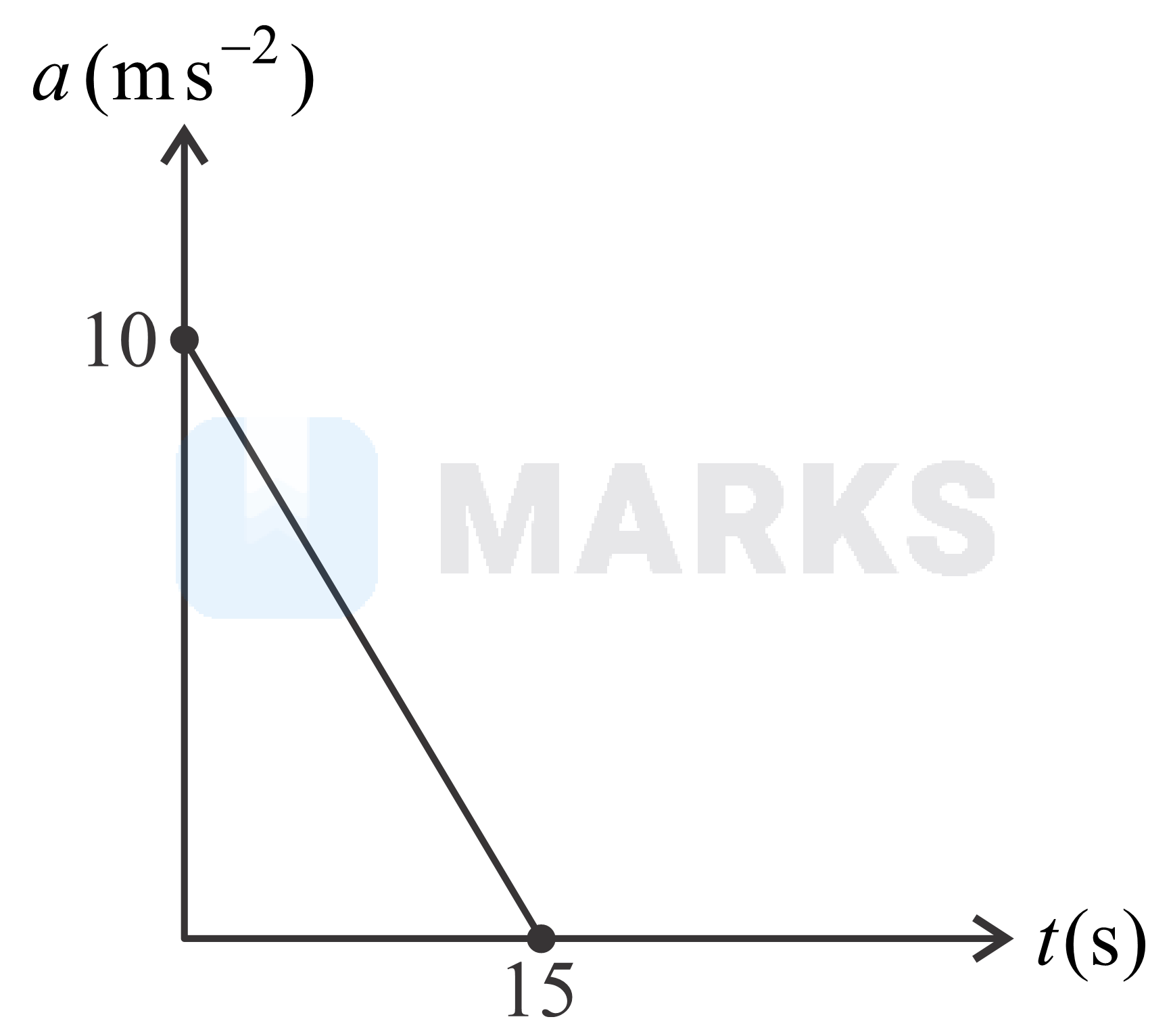 In the above graph, we can see that the acceleration of the particle is positive for the whole duration. Therefore, velocity will keep on increasing. The velocity will be maximum at .