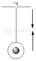 A pendulum of length carries a negative charge on the bob. A positive charge is held at the point of support. Then, the time period of the bob is