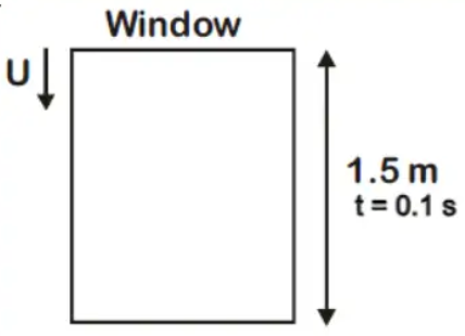 A person sitting in the ground floor of a building notices through the window, of height a ball dropped from the roof of the building crosses the window in What is the velocity of the ball when it is at the topmost point of the window?