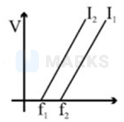 A photoelectric experiment is performed at two different light intensities and . Choose the correct graph showing the variation of stopping potential versus frequency of light.