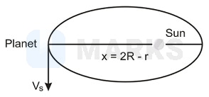 Area covered by line joining planet and sun in time dt is Areal velocity where = distance between planet and sun ω = angular speed of planet about the sun. From kepler's second low, areal velocity of planet is constant. At farthest position
