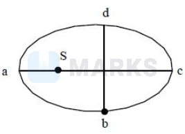 A planet revolving round the Sun in an elliptical orbit, whose semi-major axis is double that of its semi-minor axis. When the Sun is assumed to be at rest at the mid point of semi-major axis, planet takes 24 hours to travel through a path bed as shown in the figure. Then the time taken by the planet to travel along dab is ____