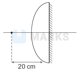 A point object is placed at distance of $20 \mathrm{~cm}$ from a thin planoconvex lens of focal length $15 \mathrm{~cm}$. The plane surface of the lens is now silvered. The image created by the system is at