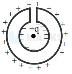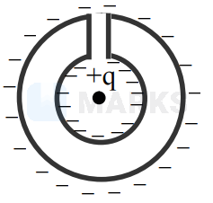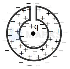 A positive charge $q$ is placed at the center of a neutral hollow cylindrical conducting shell with its cross section as shown in the figure below.