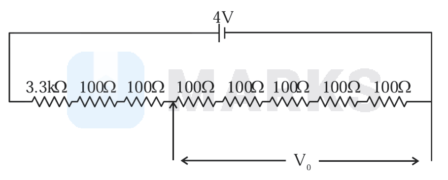 A potential divider circuit is shown in figure. The output voltage is