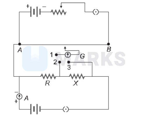 The balancing length for $\mathrm{R}$ (when 1,2 are connected) be is $l_1$ and balancing length for $\mathrm{R}+\mathrm{X}$ (when 1,3 is connected is $\mathrm{l}_2$ )