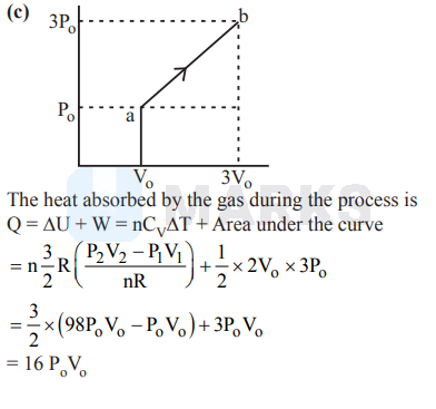 A quantity of monoatomic gas undergoes a process in which pressure is changed linearly with volume. The pressure and volume are changed from initial value $\left(\mathrm{P}_{\mathrm{o}}, \mathrm{V}_{\mathrm{o}}\right)$ to final value $\left(3 \mathrm{P}_{\mathrm{o}}, 3 \mathrm{~V}_{\mathrm{o}}\right)$. The heat absorbed by the gas during process is