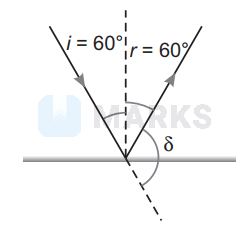 $\begin{aligned} \delta &=180^{\circ}-(i+r) \\ &=180^{\circ}-2 i \\ &=180^{\circ}-2 \times 60^{\circ}=60^{\circ} \end{aligned} \quad($ As $i=r)$