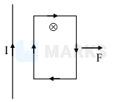 A rectangular loop of wire shown below is coplanar with a long wire carrying current $\mathrm{I}$.