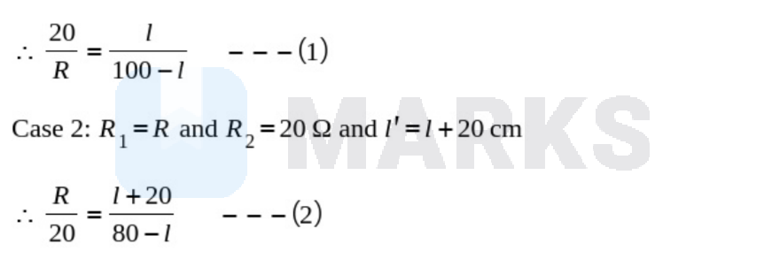 A resistance of $20 \Omega$ is connected in the left gap of a metre bridge and an unknown resistance greater than $20 \Omega$ is connected in the right gap. When these resistances are interchanged, the balance point shift by $20 \mathrm{~cm}$. The unknown resistance is