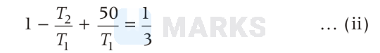 So, $\quad 1-\frac{T_2-50}{T_1}=\frac{1}{3}$