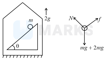 A rocket is fired vertically from the earth with an acceleration of 2g, where g is the gravitational acceleration. On an inclined plane inside the rocket, making an angle with the horizontal, a point object of mass m is kept. The minimum coefficient of friction between the mass and the inclined surface such that the mass does not move is: