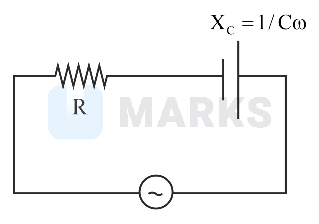 A series R-C circuit is connected to an alternating voltage source. Consider two situations: