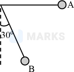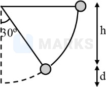 A simple pendulum is released from as shown. If and represent the mass of the bob and length of the pendulum, the gain in kinetic energy at is