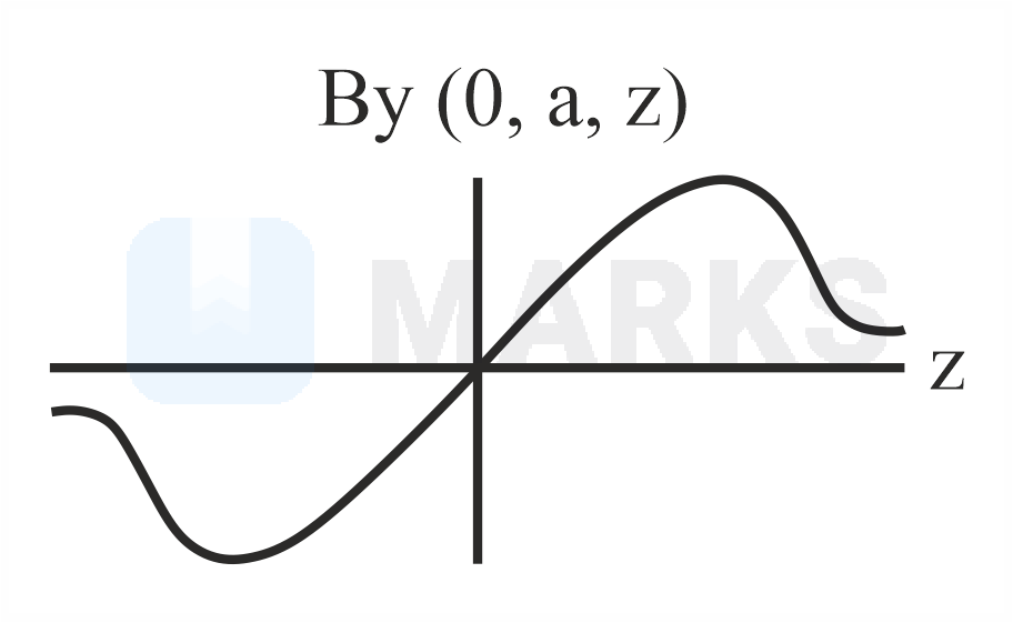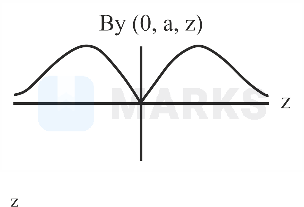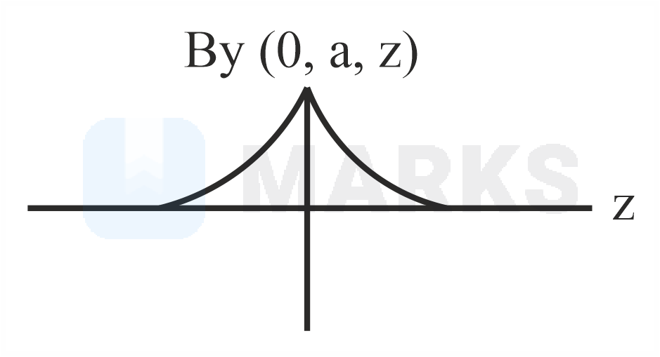 A single current carrying loop of wire carrying current flowing in anticlockwise direction seen from direction and lying in plane is shown in figure. The plot of component of magnetic field at a distance (less than radius of the coil) and on plane coordinate looks like