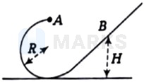 A small bead of mass slides on a smooth wire that is bent in a circle of radius . It is released at the top of the circular part of the wire (point in the figure) with a negligibly small velocity. Find the height where the bead will reverse direction.
