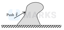 A small child tries to moves a large rubber toy placed on the ground. The toy does not move but gets deformed under her pushing force $(\overrightarrow{\mathrm{F}})$ which is obliquely upward as shown. Then