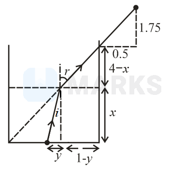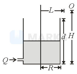 A small coin is fixed at the center of the base of an empty cylindrical steel container having radius and height . At time , the container starts getting filled with water at a flowrate of without disturbing the coin. Find the approximate time when the coin will first be seen by the observer "" from the height of above and radially away from the coin as shown in the figure. Refractive index of water is .