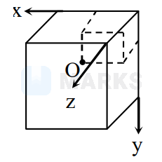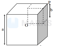 A smaller cube with side b (depicted by dashed lines) is excised from a bigger uniform cube with side a as shown below such that both cubes have a common vertex $\mathrm{P}$. Let $\mathrm{X}=\mathrm{a} / \mathrm{b}$. If the centre of mass of the remaining solid is at the vertex $\mathrm{O}$ of smaller cube then $\mathrm{X}$ satisfies.