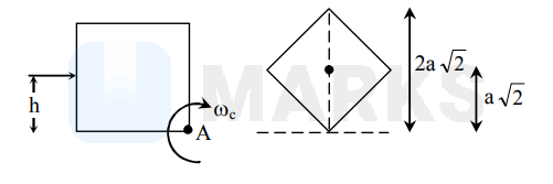 \frac{1}{2} \mathrm{I}_{\mathrm{A}} \omega_{\mathrm{c}}^{2}=\mathrm{Mg}(\mathrm{a} \sqrt{2}-\mathrm{a}) \\