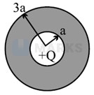 A point charge is placed at the center of the spheres. Taking at , the potential at position from the center is-
