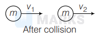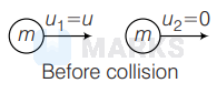 $\begin{aligned} & m u=m v_1+m v_2 \\ & \Rightarrow \quad v_1+v_2=u \\ & \end{aligned}$...(ii)