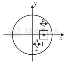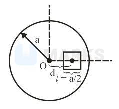 A square shaped hole of side is carved out at a distance from the centre '' of a uniform circular disk of radius a. If the distance of the centre of mass of the remaining portion from is , value of (to the nearest integer) is :