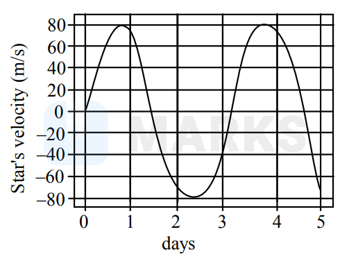 A star of mass $M$ (equal to the solar mass) with a planet (much smaller than the star) revolves around the star in a circular orbit. The velocity of the star with respect to the center of mass of the star-planet system is shown below: