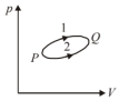 A system goes from $P$ to $Q$ by two different paths in the $p$ $V$ diagram as shown in figure. Heat given to the system in path 1 is $1000 \mathrm{~J}$. The work done by the system along path 1 is more than path 2 by $100 \mathrm{~J}$. What is the heat exchanged by the system in path 2 ?