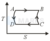 and are isothermal processes while and are adiabatic processes. The same cycle in the temperature - entropy plane is :