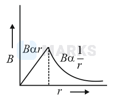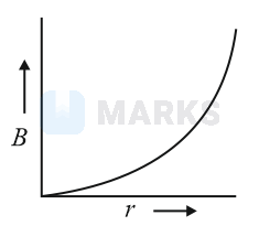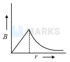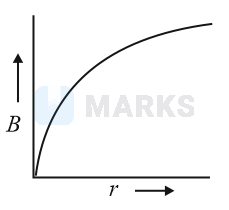 A thick current carrying cable of radius carries current uniformly distributed across its cross-section. The variation of magnetic field due to the cable with the distance from the axis of the cable is represented by: