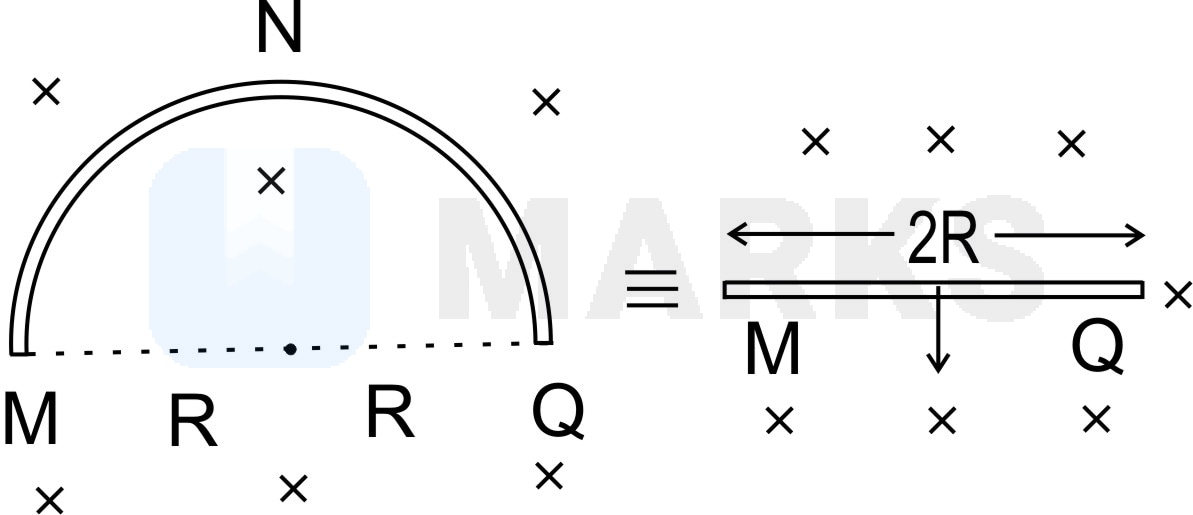 Induced motional emf in MNQ is equivalent to the motional emf in an imaginary wire MQ i. e.,