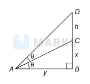 Since, the tower and flagstaff makes equal angle, i.e. $\theta$ In $\triangle B A C$,