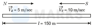 A train of length is going towards north direction at a speed of . A parrot flies at a speed of towards south direction parallel to the railway track. The time taken by the parrot to cross the train is equal to