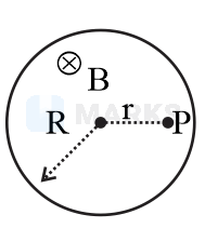 A uniform magnetic field of induction is confined in a cylindrical region of the radius . If the field is increasing at a constant rate of , then the intensity of the electric field induced at a point distant from the axis as shown in the figure is equal to