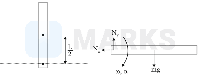 A uniform rod of length \( L \) is fixed at one end. It is initially held vertically upward, then released. Find the vertical reaction