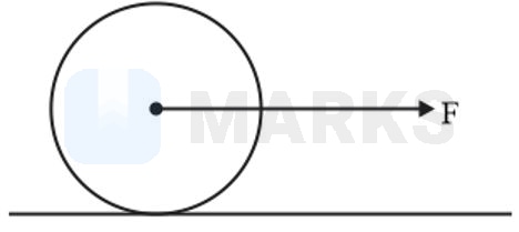 A uniform solid cylindrical roller of mass and is rolled on the ground, without slipping, by applying a constant horizontal force . Find angular acceleration of cylinder.