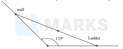 A wall is inclined to the floor at an angle of $135^{\circ}$. A ladder of length $\ell$ is resting on the wall. As the ladder slides down, its mid-point traces an arc of an ellipse. Then the area of the ellipse is