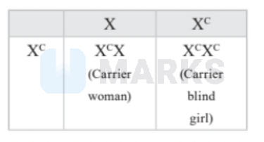 The woman has normal vision but her father was colour blind so she should be the carrier to the disease as Colour blindness is an X-Linked recessive disorder.