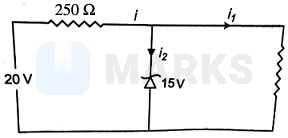 A Zener diode, having breakdown voltage equal to is used in a voltage regulator circuit shown in the figure. The current through the diode is