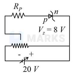 A zener diode having zener voltage and power dissipation rating of is connected across a potential divider arranged with maximum potential drop across zener diode is as shown in the diagram. The value of protective resistance is _____