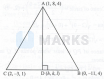 Let $\mathrm{D}(h, k, l)$ be foot of Perpendicular $\mathrm{AD}$ on $\mathrm{BC}$. Equation of line $\mathrm{BC}$ is