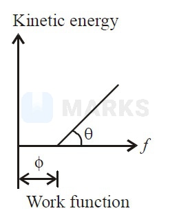 According to Einstein’s photoelectric equation, the plot of the kinetic energy of the emitted photoelectrons from a metal versus the frequency of the incident radiation gives a straight line whose slope