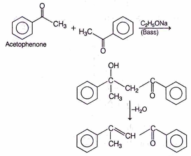 Aldehydes or ketones with $\alpha-\mathrm{H}$ atom, in presence of dilute base, undergoes aldol condensation to give $\beta$-hydroxy aldehyde or ketone. On heating, aldol eliminate water molecule to form $\alpha, \beta$-unsaturated compounds.
