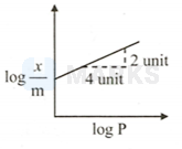 Adsorption of a gas follows Freundlich adsorption isotherm. In the given plot, is the mass of the gas adsorbed on mass of the adsorbent at pressure (P). if find the magnitude of is ------.