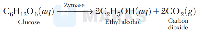 $\mathrm{C}_{6} \mathrm{H}_{12} \mathrm{O}_{6}(a q) \longrightarrow 2 \mathrm{C}_{2} \mathrm{H}_{5} \mathrm{OH}(a q)+2 \mathrm{CO}_{2}(g)$
