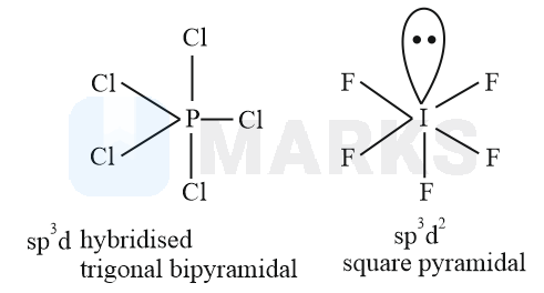 I. is trigonal bipyramidal whereas is square pyramidal.