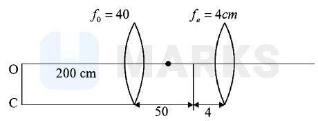 An astronomical telescope has objective and eyepiece of focal lengths and respectively. To view an object away from the objective, at what distance the lenses must be separated (in )?
