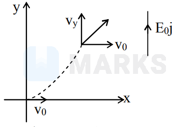 $\mathrm{v}_{\mathrm{y}}=0+\frac{\mathrm{qE}_{0}}{\mathrm{~m}} \mathrm{t}$